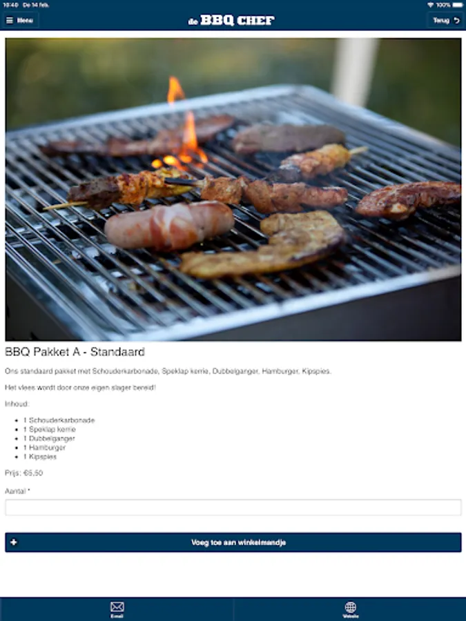 Install the app, enter your order and your BBQ products are delivered without having to leave home. No dragging with bags on a hot day, no longer looking for the supplier of a nice piece of meat quality for a good price!