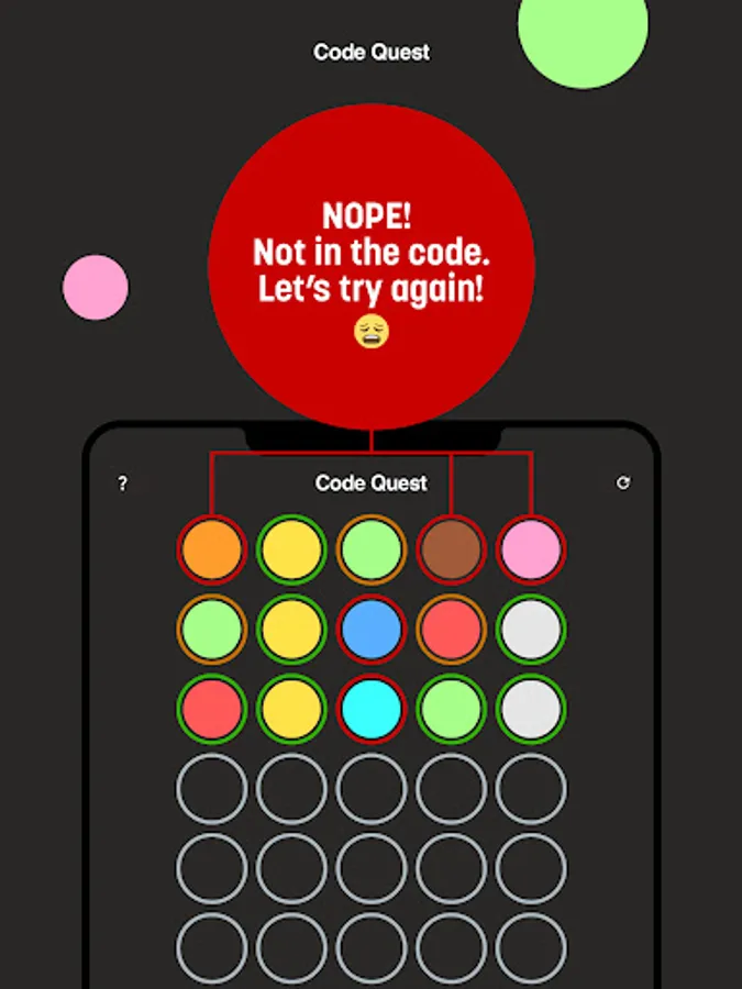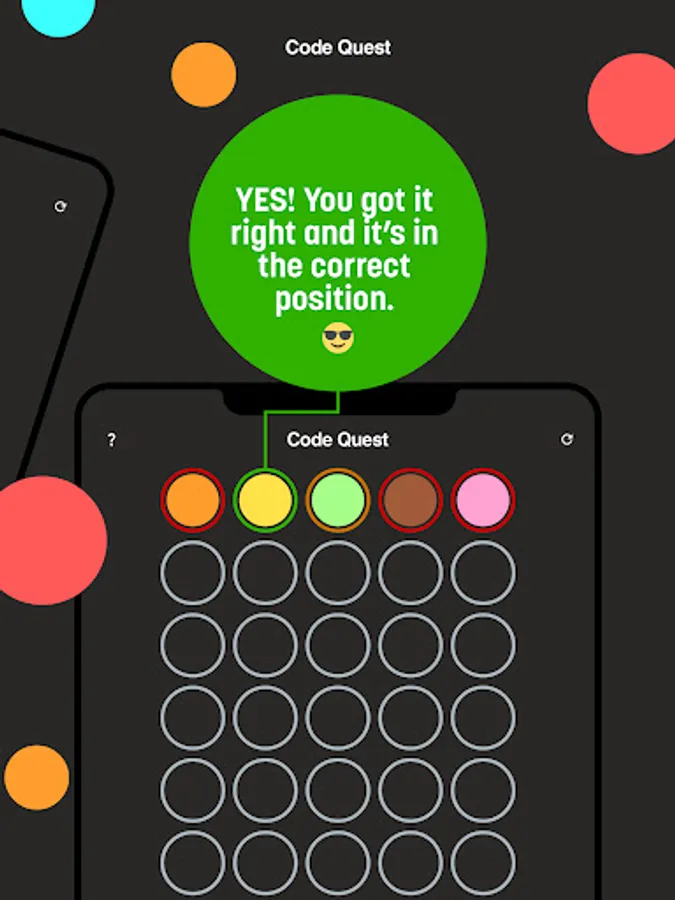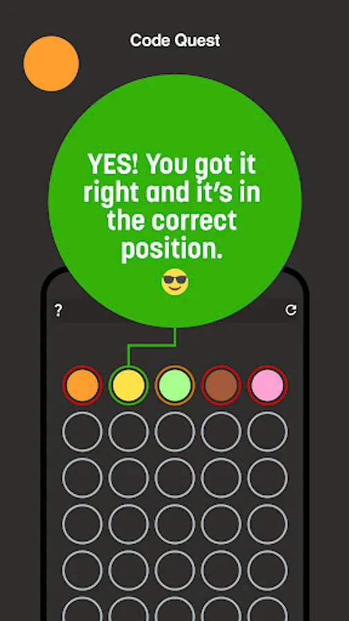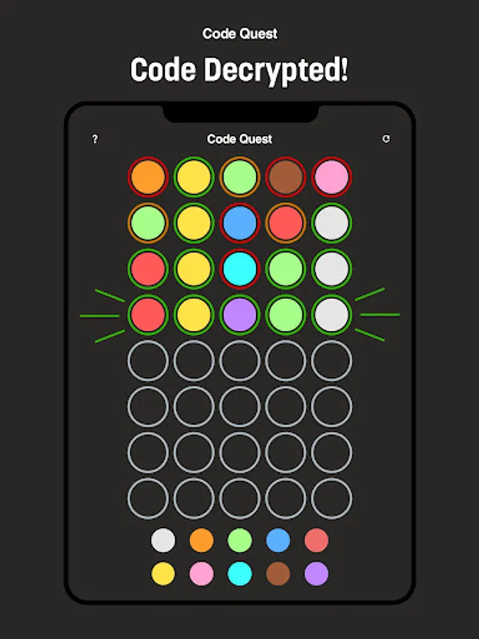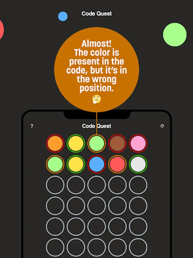 After each guess, the circles will get bordered by a ring to show how close you were to the right colour code.