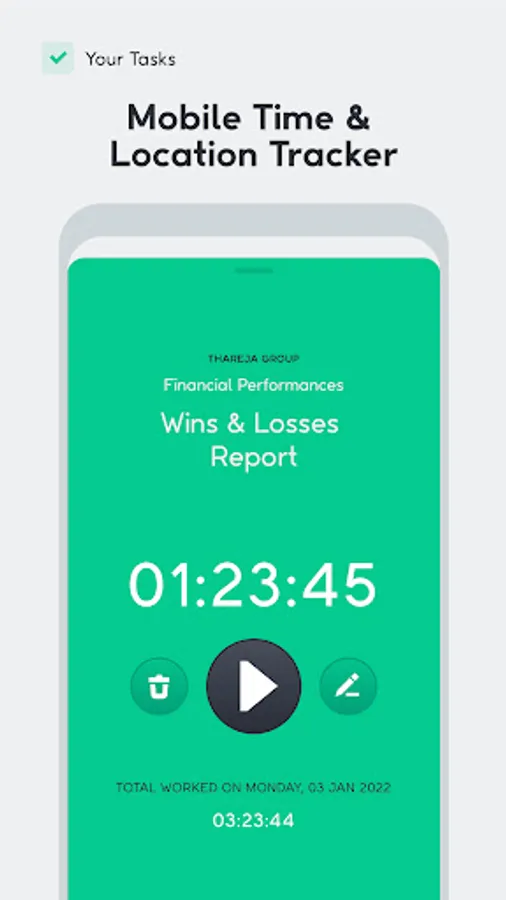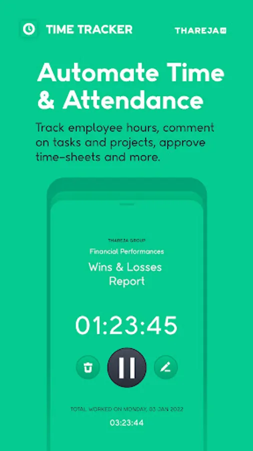 Whether you're working as a freelancer, an employee, or as a manager of many employees, the Thareja Time tracker makes it evident to understand how your time or your team's time is being spent. No more calculation work, no more worksheets, and no more pen and paper logs.