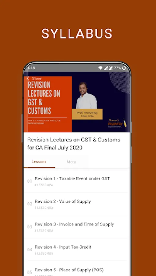 Tharun's Brainery provides insightful and exam oriented classes on Indirect Tax (GST & Customs) at inter and final level of CA/CMA/CS professional courses from renowned expert faculty Prof. Tharun Raj, who has 13 years of experience in teaching indirect tax for over 10,000 students across Southern India.