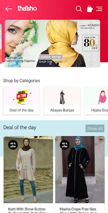 Shop online right from the comfort of your home and get any products delivered right at your doorstep. Just download the Thasho free online shopping app on your Android or iOS phone or tablet and choose from a wide range of collection from various categories such as Islamic fashion wear, electronics devices, smartphones, accessories and other consumer products.