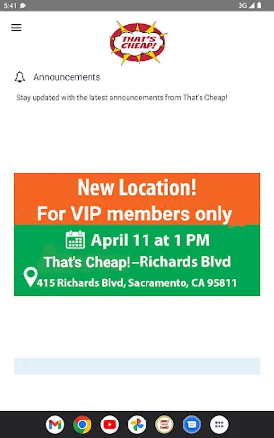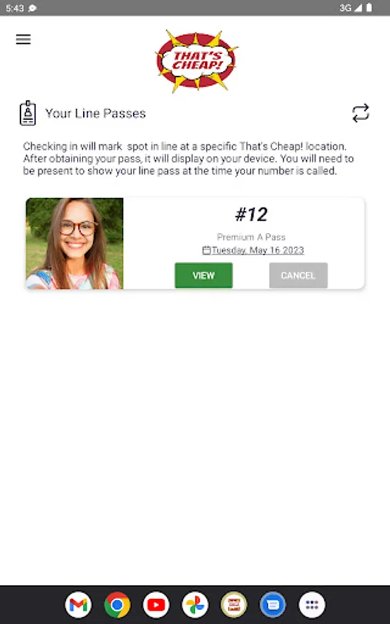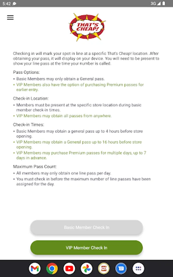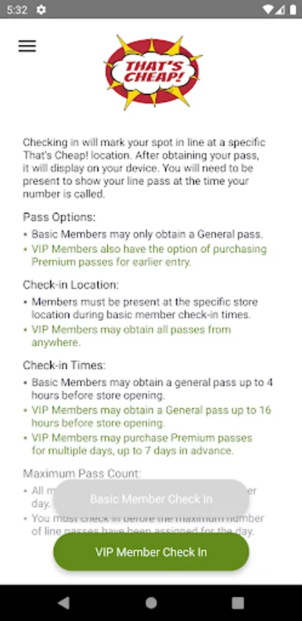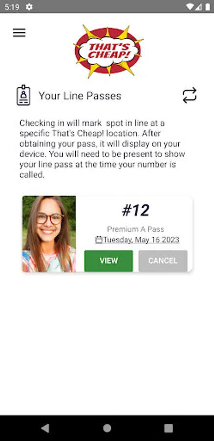 Because of the popularity of the That's Cheap stores, the lines to get in the store can quite lengthy, but with this app you can now get priority entrance. Just create your free account, be on-location up to four hours prior to store opening to check-in and get your in-app line pass (limited number of line passes per day) . You can also check in one companion at same time.