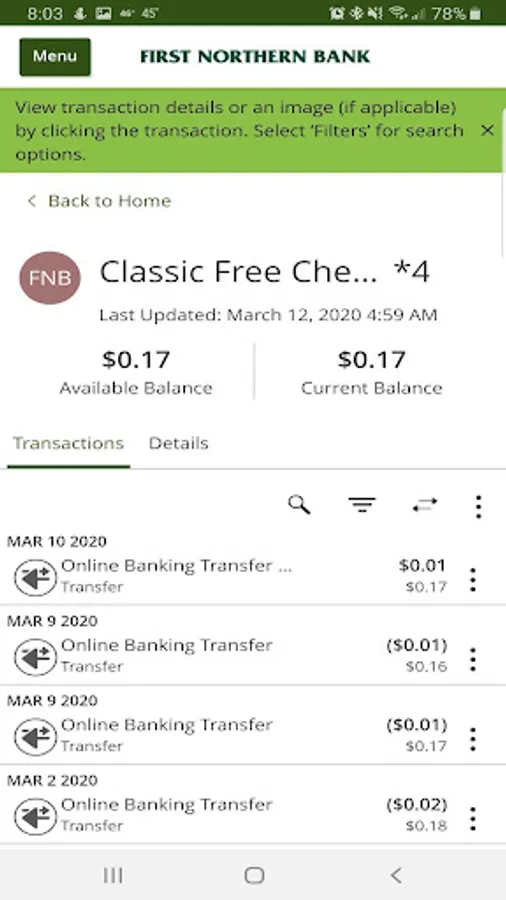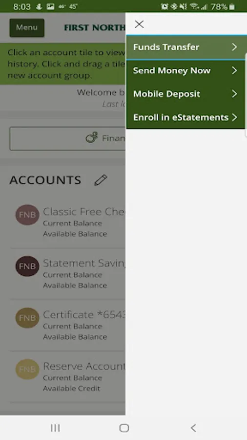Mobile Banking offers you the ability to view account balances and recent transactions, transfer funds between your accounts, and locate a First Northern Branch and surcharge free ATMs. Our Mobile Banking service provides you with the ultimate in convenience for managing your finances anytime, anywhere from any Google Android device!