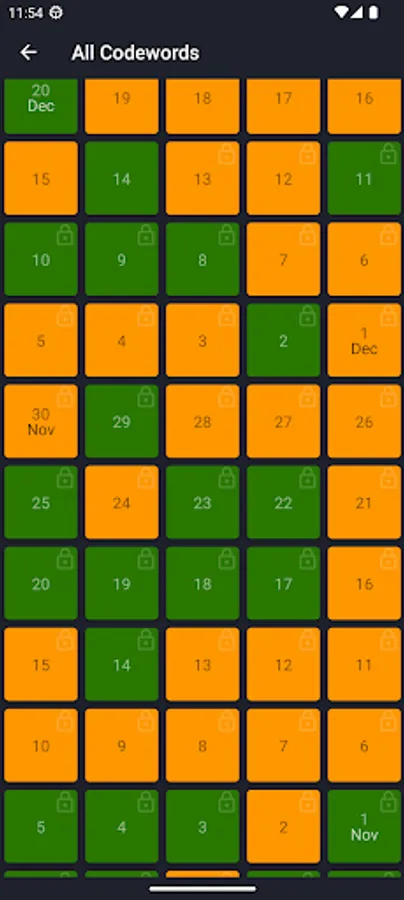 - Our codewords are always pangrams, i.e. they contain all the letters of the alphabet