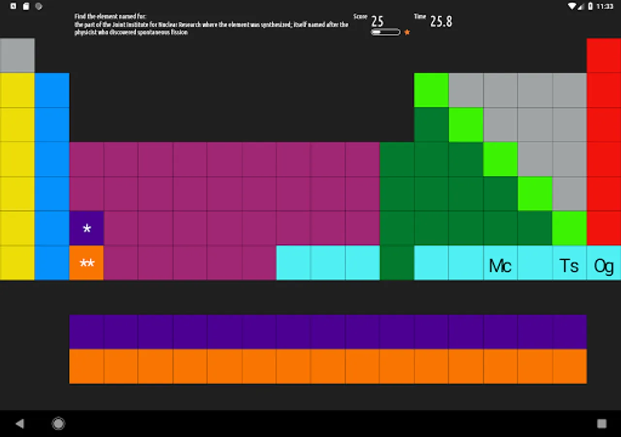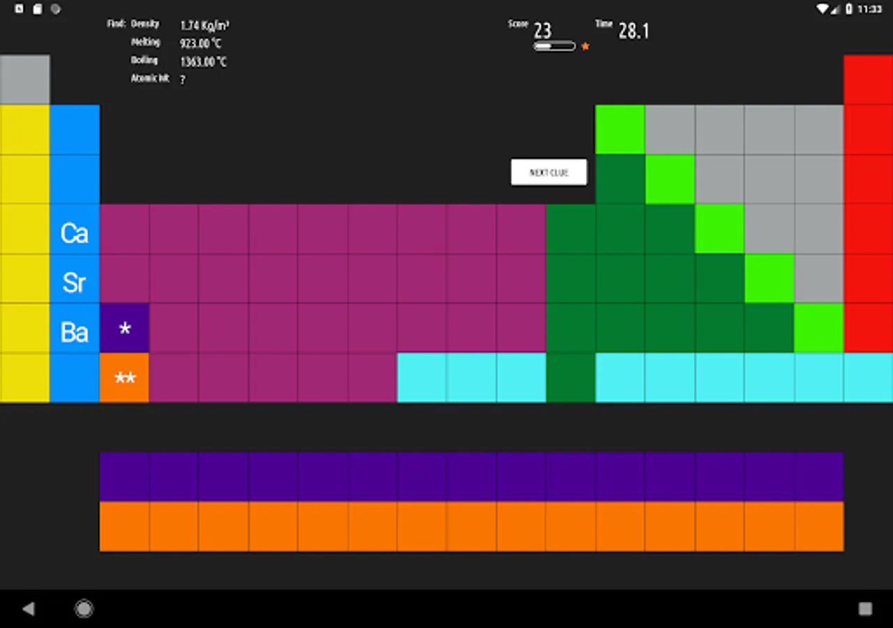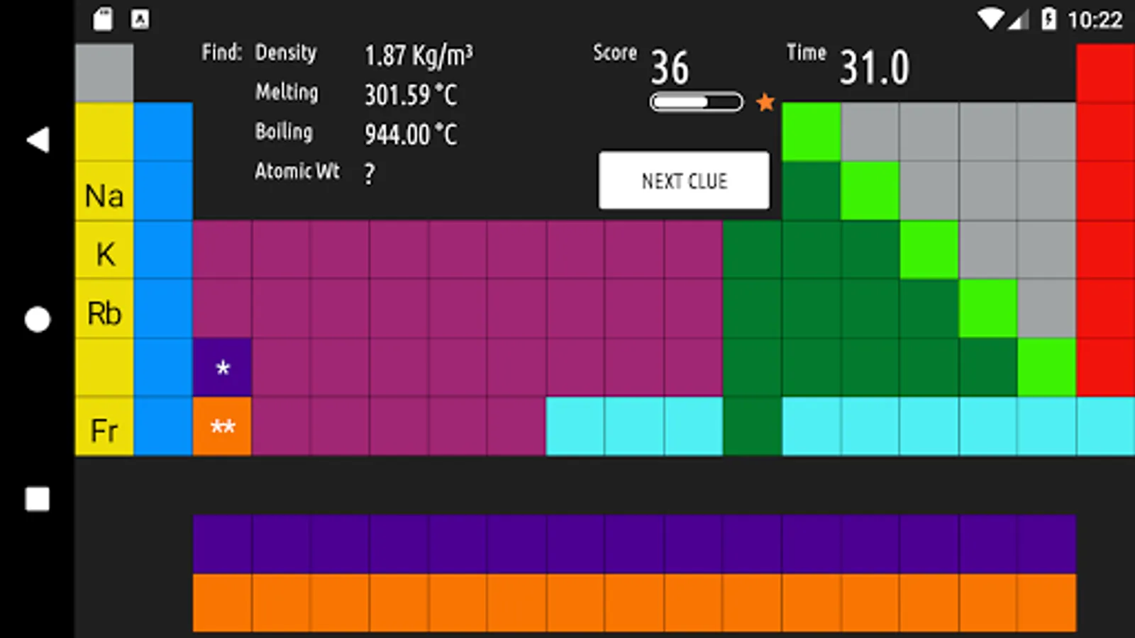 All quizzes are split into 10 categories: Alkali metals, alkaline earth metals, reactive non-metals, transition metals, lanthanides, actinides, post-transition metals, metalloids, noble gases, and unknown.