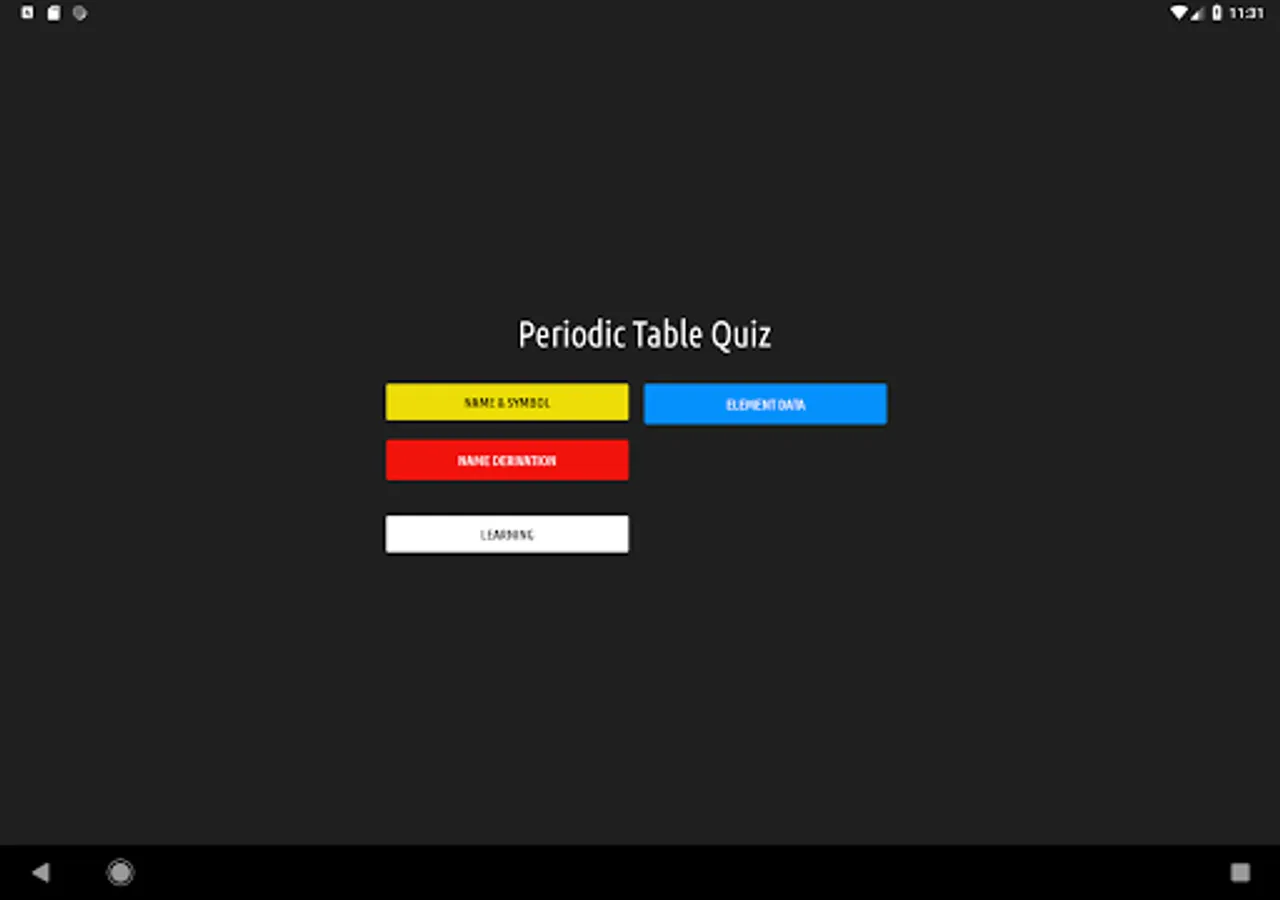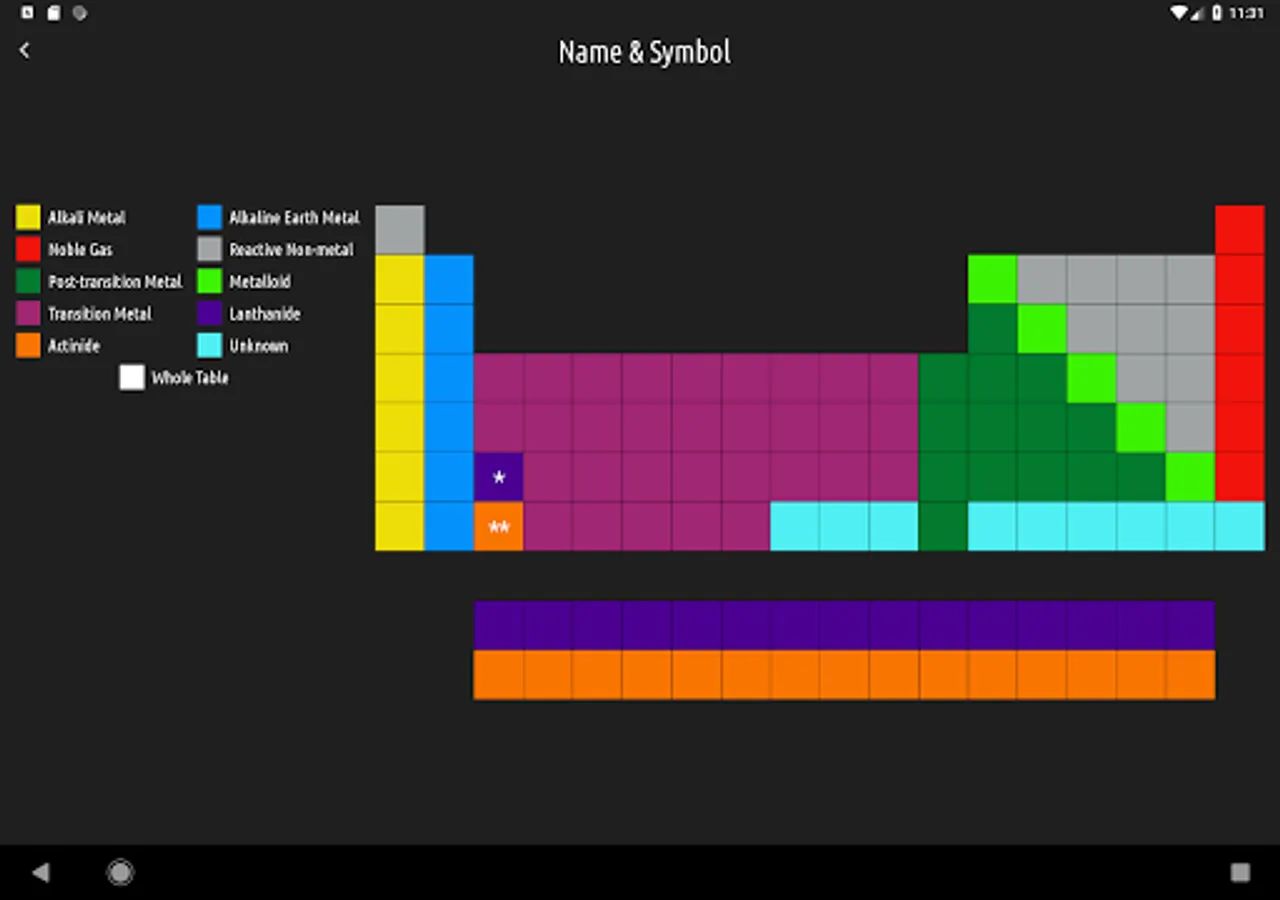 There is also a "whole table" category for each quiz, which takes you through all 118 elements.