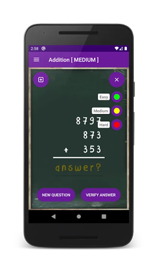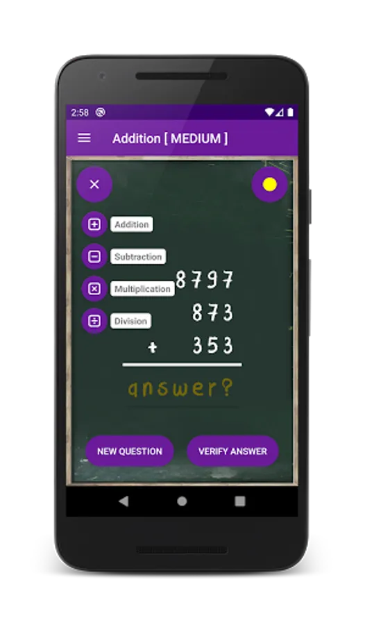 Just tap on to 'NEW QUESTION' button to generate a new question of already selected Maths operation type.