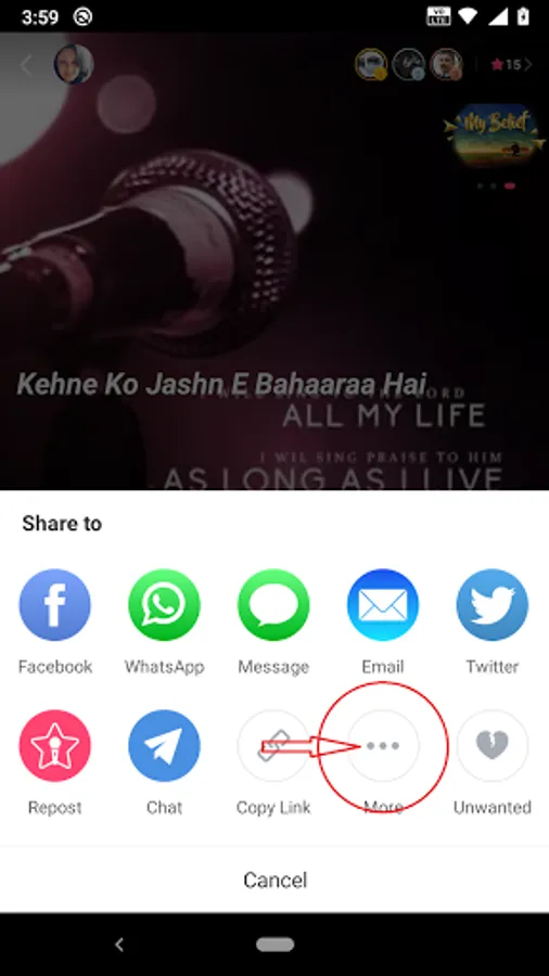 Step2: Click on Share icon, then click on More... ( this will show a list of apps )