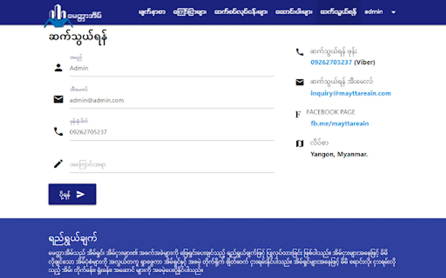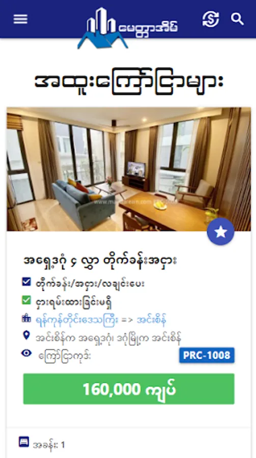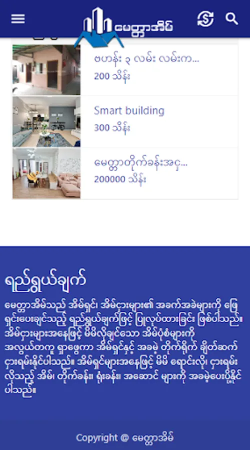 အိမ်၊ ခြံ၊ မြေ၊ တိုက်ခန်း၊ ရုံးခန်း၊ အဆောင် စသည်တို့ကို ဝယ်ယူခြင်း သို့မဟုတ် ငှားရမ်းလိုပါက မေတ္တာအိမ်မှ တဆင့် ပိုင်ရှင်နှင့် တိုက်ရိုက်ဆက်သွယ်လိုက်ပါ။