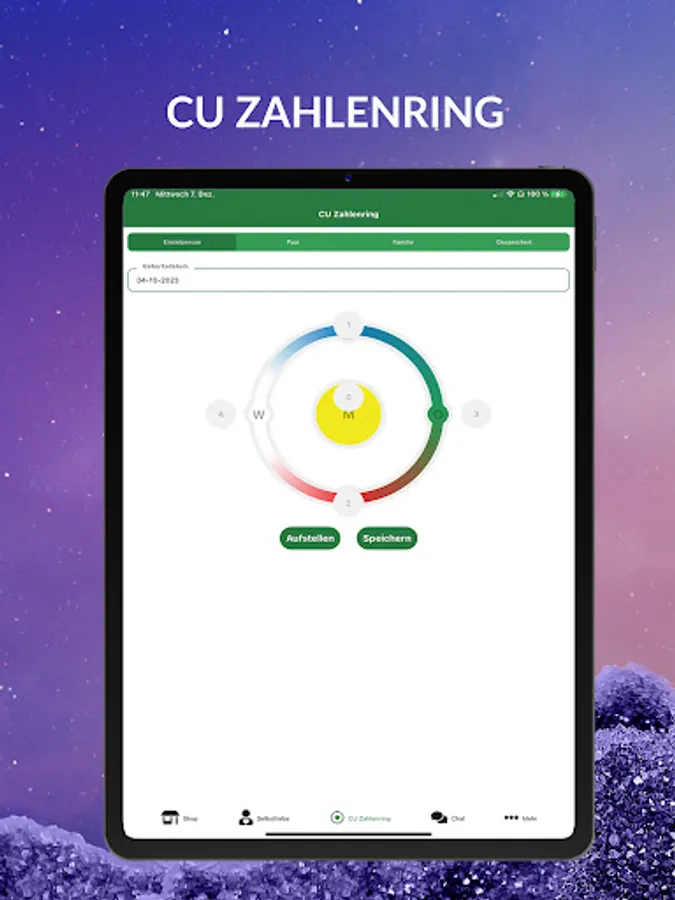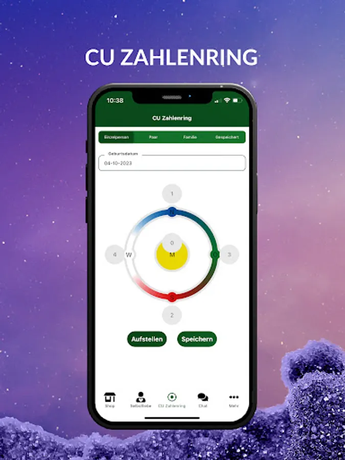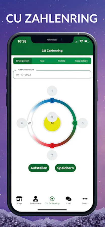 With the CU number ring you can set up your date of birth and find out the interpretation of your abilities. That's not all, you can also list the birth dates of your partner and even your children and, depending on the option selected, also save them.