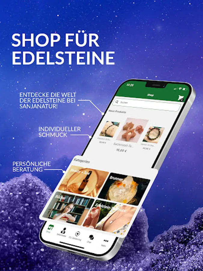With the SanjaNatur app you can also shop our products via app. If you have any questions, you can contact us via the chat and we will advise you personally, based on the knowledge of the CU number ring, which gemstone is the right one for you.
