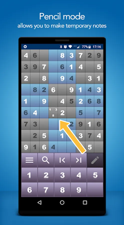 ✔ Pencil mode - with the pencil markings you make temporary markings, to later decide which number is correct.
