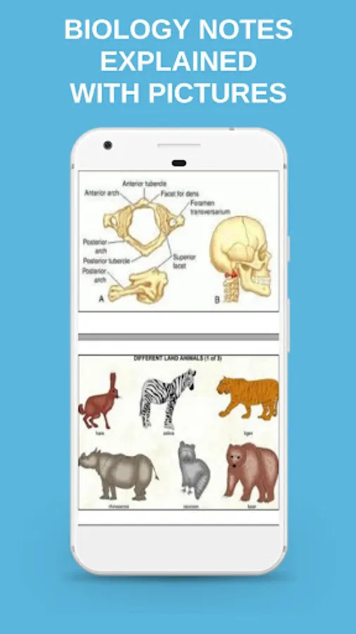 it is a creative and new way to learn biology with short notes and pictures that enables users to see and visualize concepts using images hence eliminating the problem for need of imagination hence facilitating relating to theory in biology with pictures enabling students to understand biology concepts better and teachers to have an easy time explaining concepts