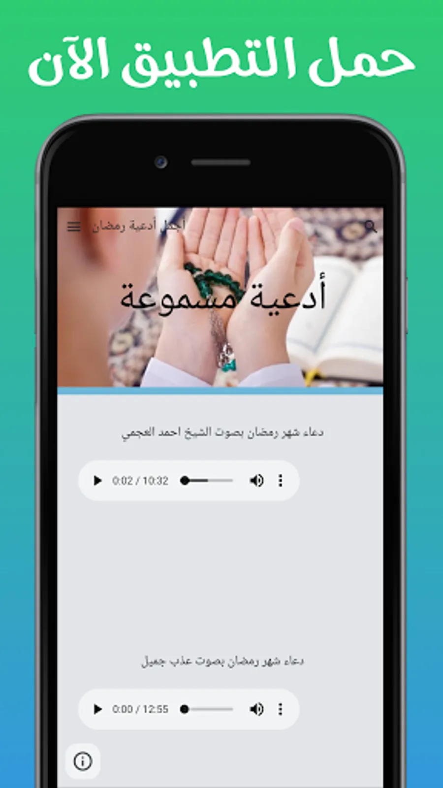 The application contains: Ramadan supplications, short Ramadan supplications, written Ramadan supplications, audible Ramadan supplications, beautiful Ramadan supplications, Ramadan supplications, written Ramadan supplications, Ramadan supplications, Ramadan 2020 prayers, Ramadan 2021 supplications, and the supplications narrated from the Prophet ﷺ in the blessed month of Ramadan The morning supplications are written, the evening remembrances are written, the supplication for the month of Ramadan in the voice of Sheikh Ahmad Al-Ajami, the supplication of the month of Ramadan in a beautiful sweet voice, and the supplications of Ramadan in the voice of the reciter Walid Al-Jarahi.