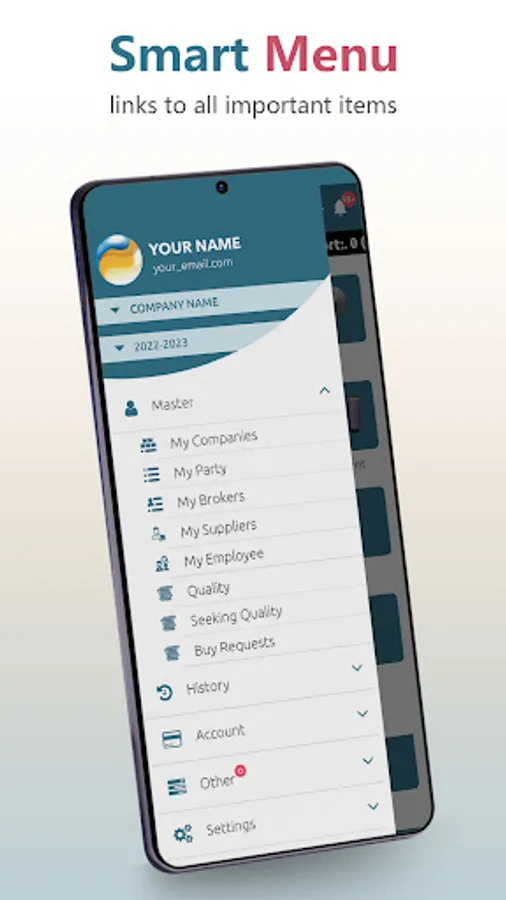 Manage your textile Business from anywhere, anytime by using our Mobile App. Moble App for admin, Sales Person, Collection Person.