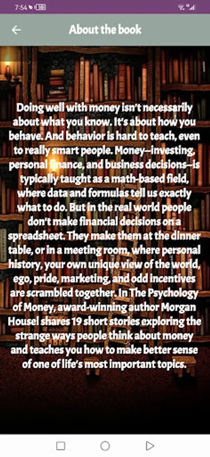 Money―investing, personal finance, and business decisions―is typically taught as a math-based field, where data and formulas tell us exactly what to do. But in the real world people don't make financial decisions on a spreadsheet. They make them at the dinner table, or in a meeting room, where personal history, your own unique view of the world, ego, pride, marketing, and odd incentives are