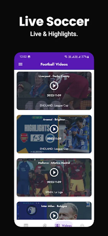 Soccerlyf Football Live Score app for the Premier League, Champions League, Europa League, Euro 2022, Liga (Spain), Serie A and Serie B (Italy), Bundesliga (Germany), Eredivisie (Holland) Ligue 1 (France), Portugal Liga Sagres, Argentina Primera Division and Primera B Metropolitana, Brazil Serie A and Serie B, Colombian Primera A, Australian A-League, Denmark SAS Ligaen and 2. Division West/East, Austria Bundesliga, Belgium Jupiler League, Czech Republic Gambrinus Liga, Finland Veikkausliiga, Greece Super Liga, etc.