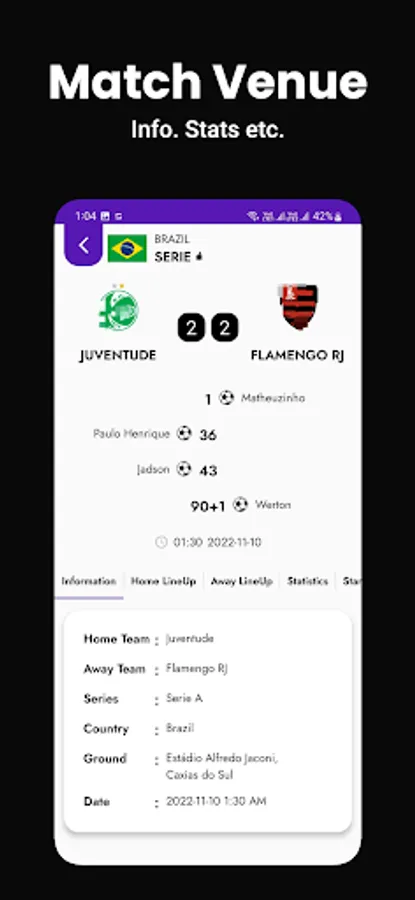 All soccer today and upcoming match venue easily available in the front of match details when we click on the match card.