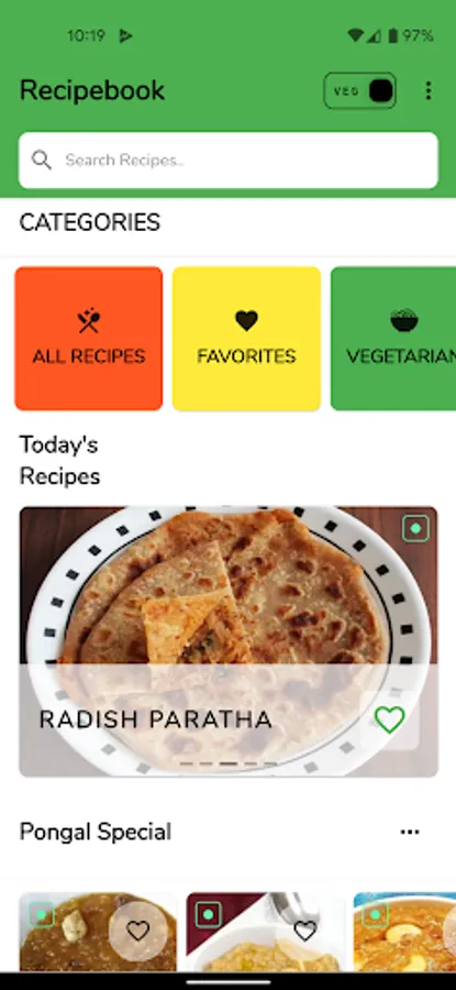 In this indian recipes/cookbook app, you can discover varieties of dishes like south Indian recipes, north Indian recipes, Marathi recipes, Gujarati recipes, Chettinadu recipes, Tamil recipes and the famour veg recipes of India. Variety of Rice recipes, chutneys and pickle varieties, Biriyani or Briyani Recipes, Veg curries and Non veg gravies, Breakfast Recipes, Dinner Recipes, Chapati recipes, soup recipes and cooking, kitchen and household tips, Indian Snacks, Indian Sweets recipes, Gravy Recipes & Tips and Recipes, Laccha Paratha and recipes from famous chefs.
