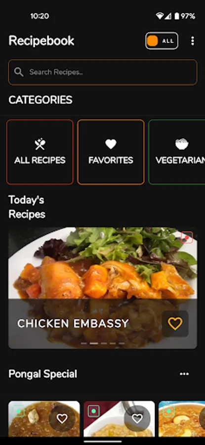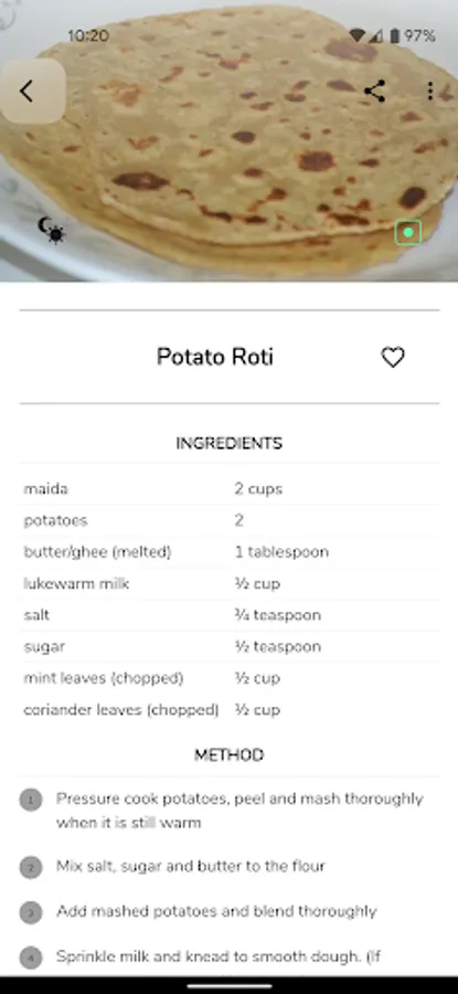 - You can favorite the recipes in favorites list to cook later or to have a glimpse while cooking.