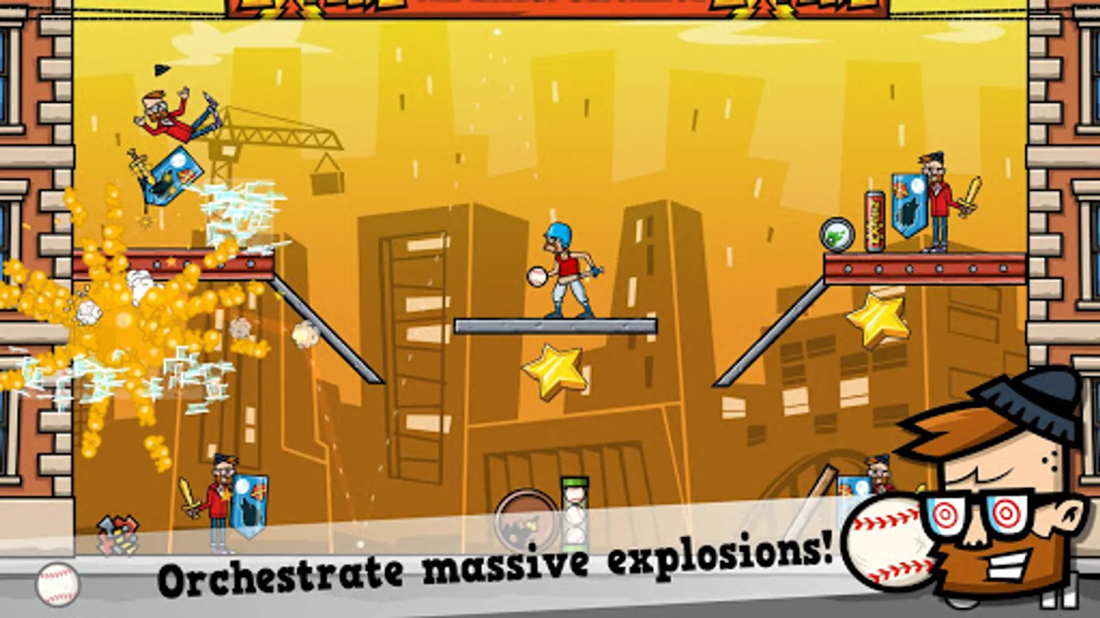 Baseball Riot is a fun physics based puzzle game packed with slapstick comedy and mayhem!