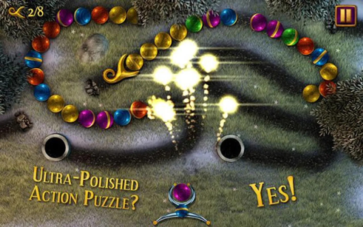 - Ultra-polished match-three marble shooter gameplay