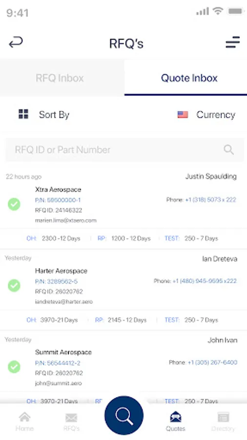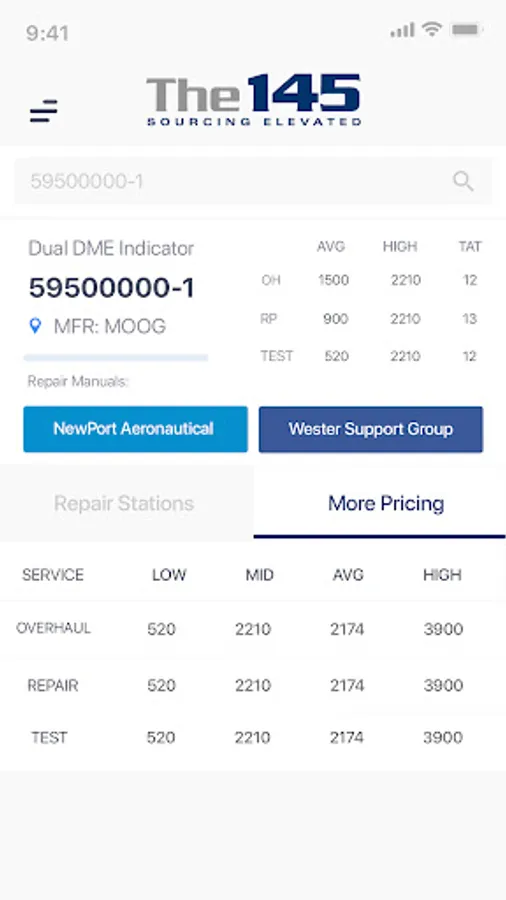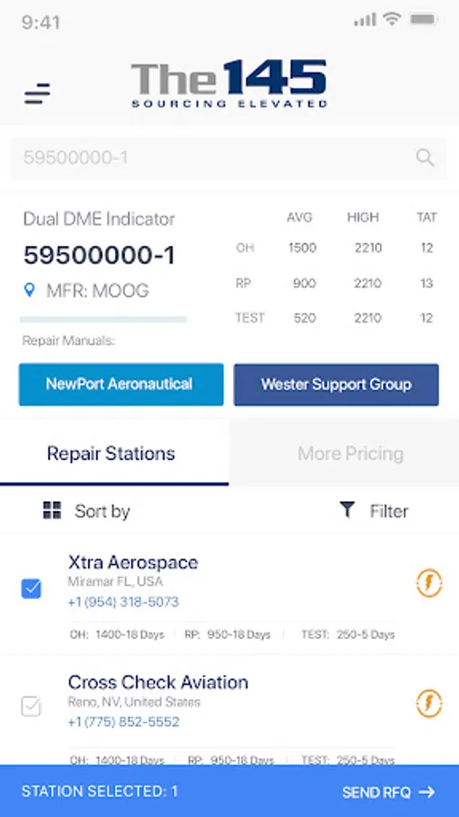 The 145’s mobile app provides users with a quick and easy way to find aircraft component repair sources, reviewing industry average repair cost data, average turn-around-time and the ability to send, receive and quote RFQs while on the go.