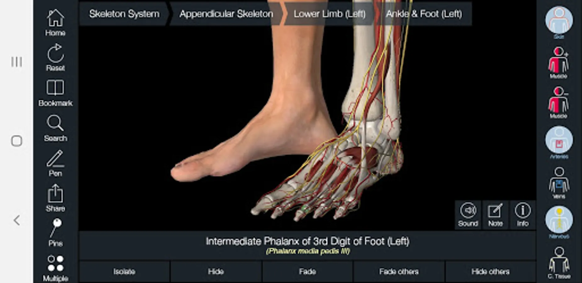 Essential Anatomy 5 is a full-featured anatomical reference app that includes MALE and FEMALE models, with 11 SYSTEMS and a total of 8,200 ANATOMICAL STRUCTURES. The app is fully 3D, meaning that you can view any structure in isolation, as well as from any angle and represents the latest in groundbreaking 3D technology and innovative design. A cutting-edge custom built 3D graphics engine, delivers outstanding quality graphics that no other competitor can achieve.