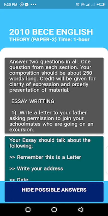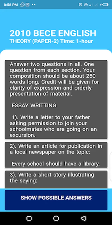This app is a practice app for students preparing to take the BECE ENGLISH Examination.