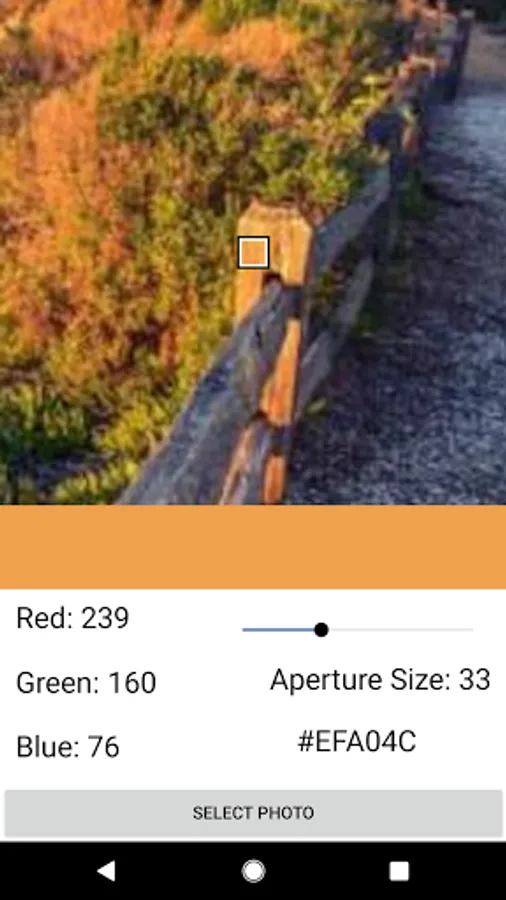 Image Color Picker lets you identify any color from any photo that you have on your phone and it reports the color in RGB as well as HEX.