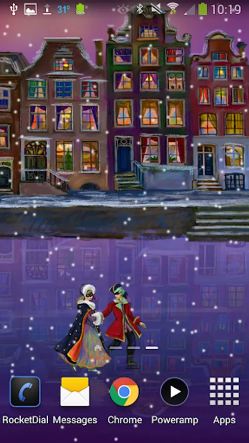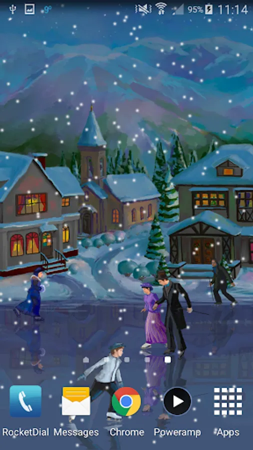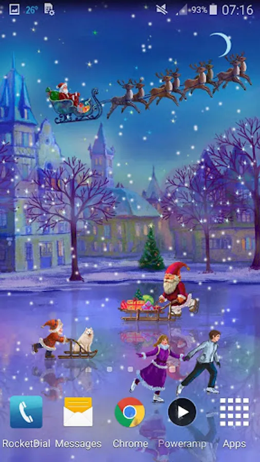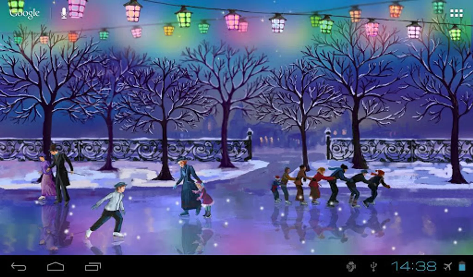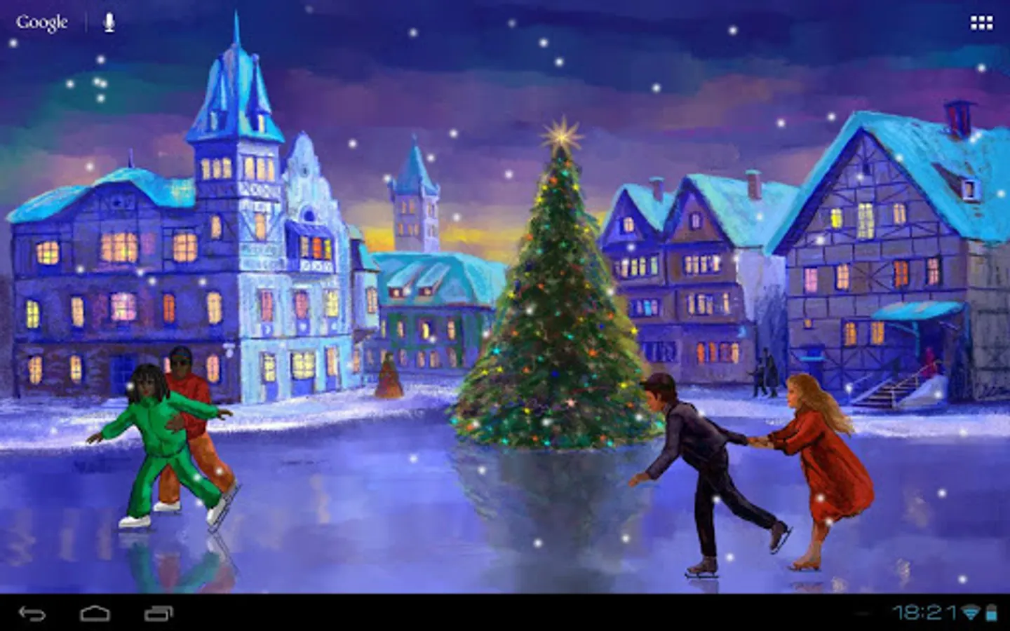 Skate right into the Christmas with this beautiful winter-spring-themed Live Wallpaper. Featuring several groups of interactive Christmas characters who are gliding along to the softly falling snow at various Christmas ice rinks.