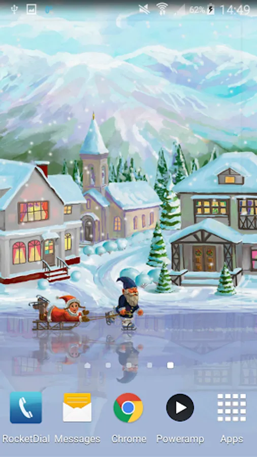 You can customize live wallpaper as you want. Double tap on screen to open the live wallpaper settings where you can change characters' acceleration, toggle on/off falling snow or animated garlands on a Christmas tree and choose from one of the 9 themes (6 of this holiday animated wallpapers are free of charge) and one of the 8 groups of characters (all are totally free).