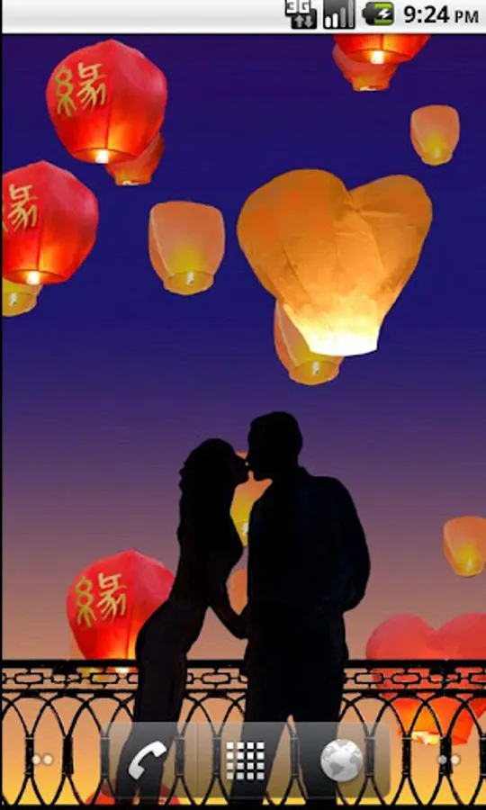 Valentines Day Live Wallpaper featuring animated beautiful Chinese paper lanterns.