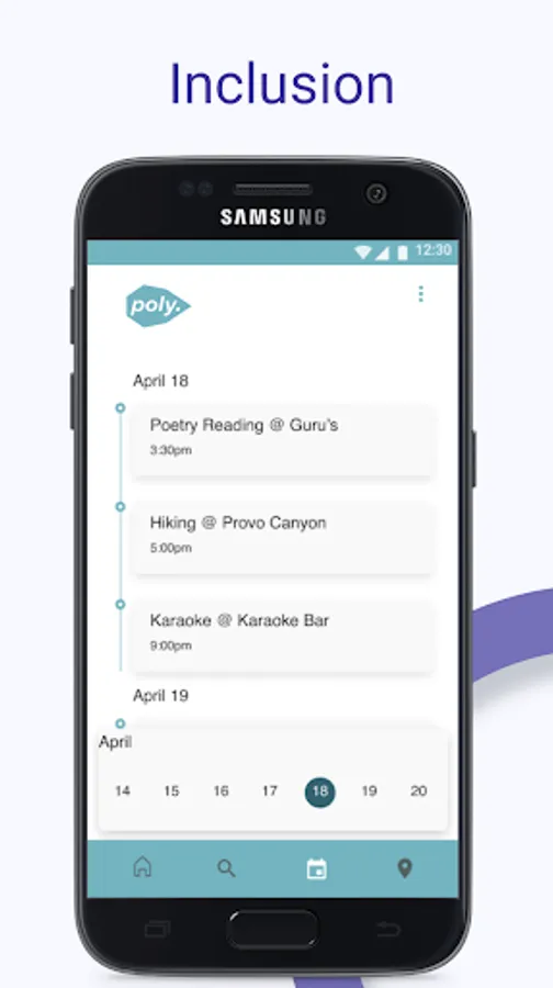 Poly is a mobile app that consolidates an organization's activities and events all onto one platform. Individuals can find, create, and explore.