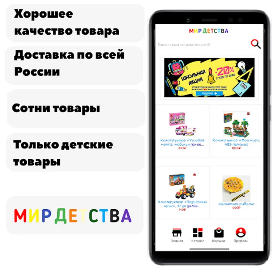 Products for babies, products for children, school supplies, clothes for children of all ages, educational products and more than a dozen varieties