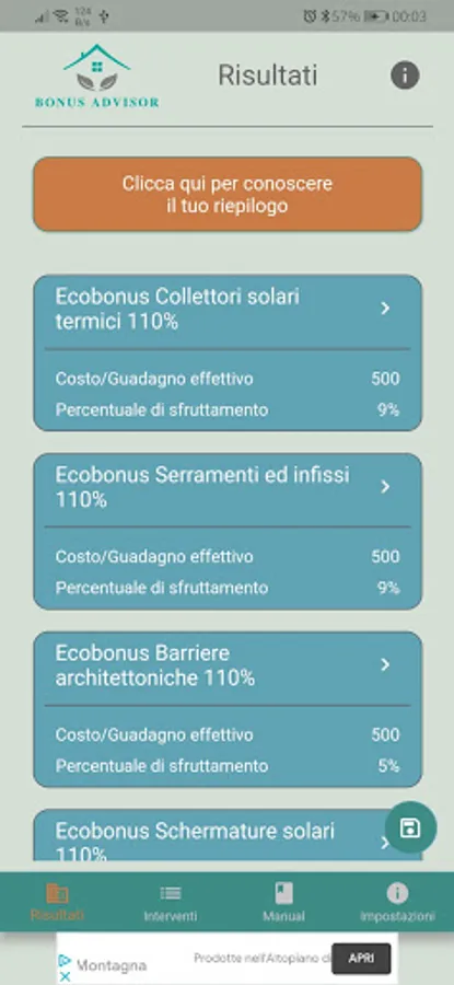 Bonus Advisor is an app that helps you make the most of home bonuses, i.e. the building bonuses provided by the Italian Government for those who want to carry out work in single-family homes, or in condominiums, obviously including the famous 110 percent Bonus (Superbonus 110, Sismabonus 110, Ecobonus 110 etc ...).