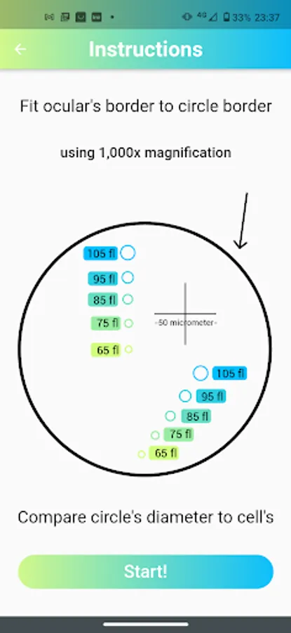 This app was developed to optically assess the volume of red blood cells, in order to more accurately identify Mean Corpuscular Volume (MCV), a data of great importance in the blood count.