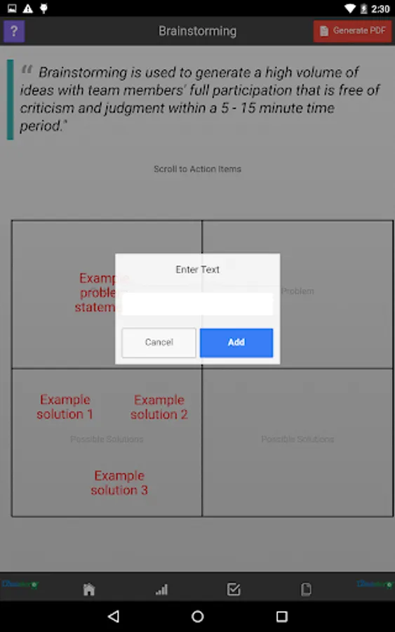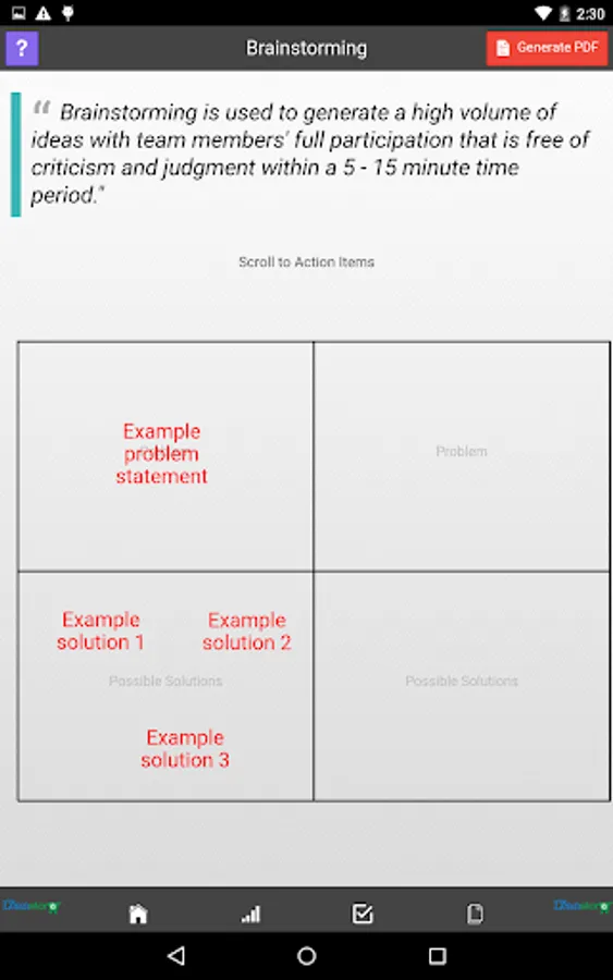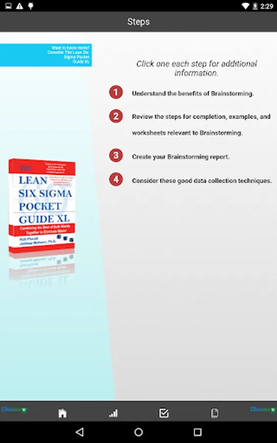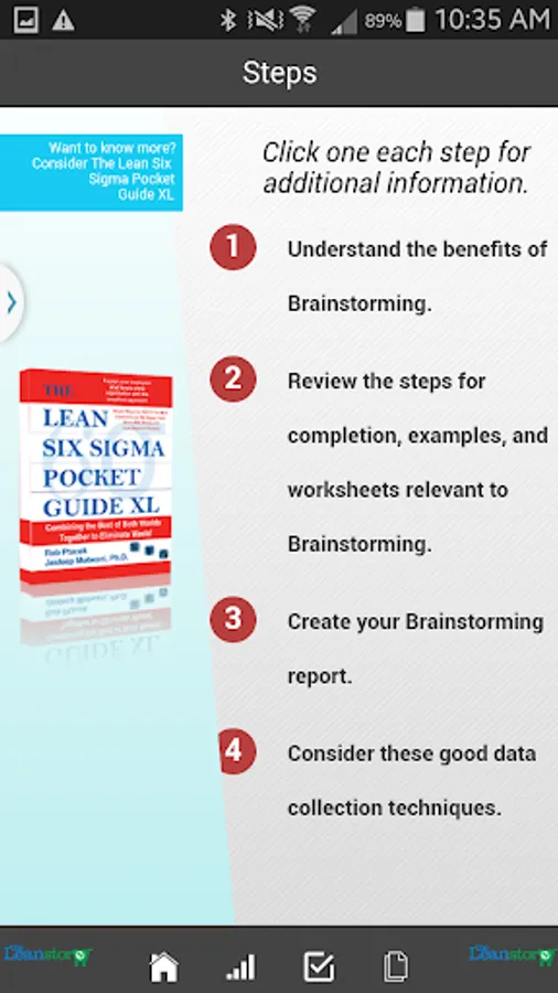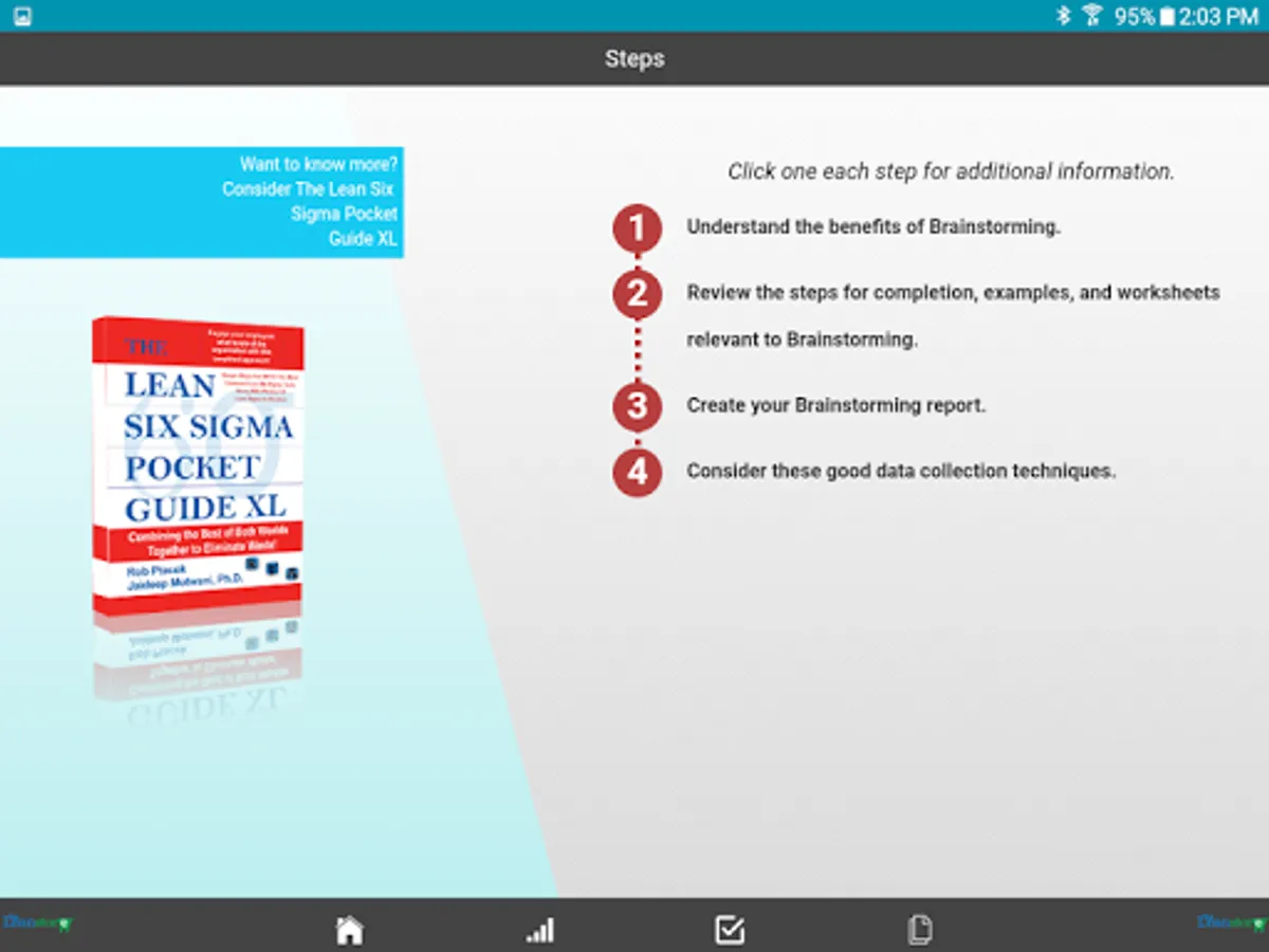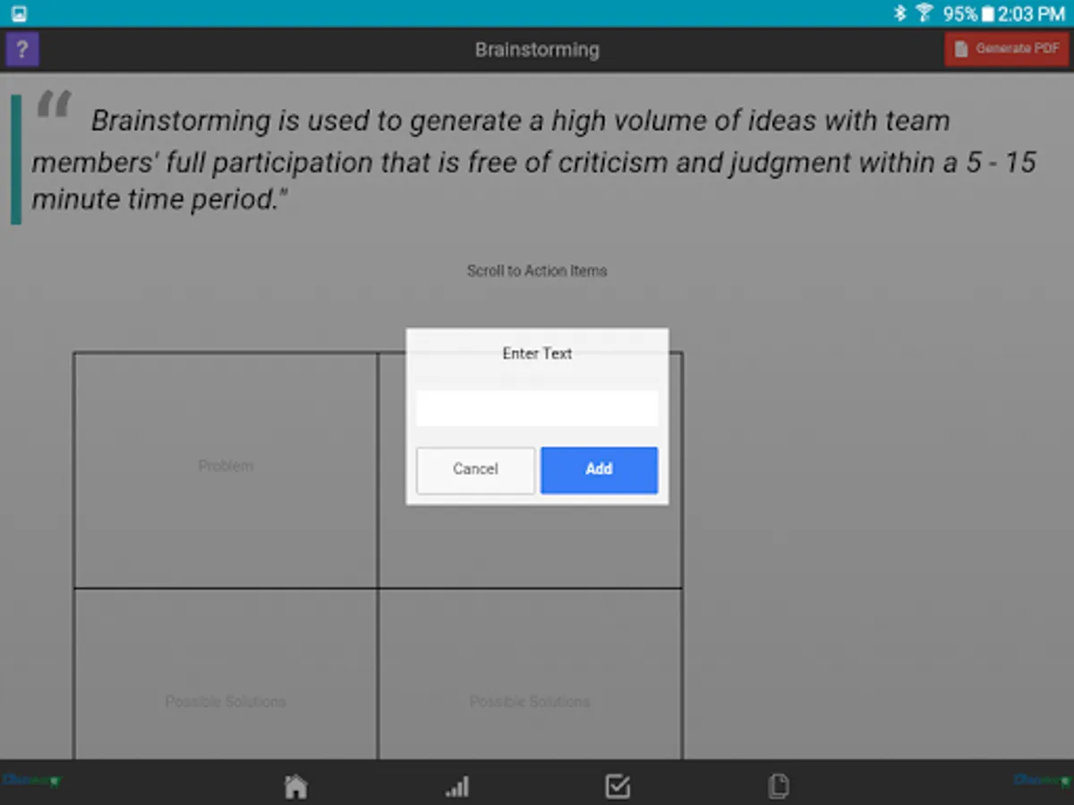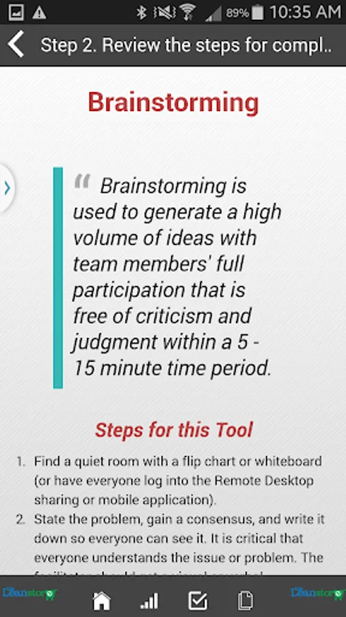 Learn the basics on how brainstorming can be used to effectively engage employees in obtaining their ideas. In brainstorming, there is that one cardinal rule - No idea is criticized. This app is designed for anyone who wants to effectively solve problems via Total Employee Involvement. Associates, Managers, and Executives with either some or no experience with Lean will benefit from this app. Conducting an effective brainstorming session will help facilitate a greater number of ideas, which can very well generate a radical and effective solution.