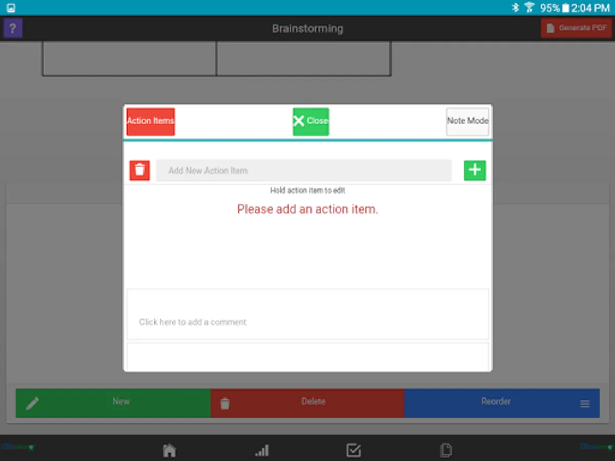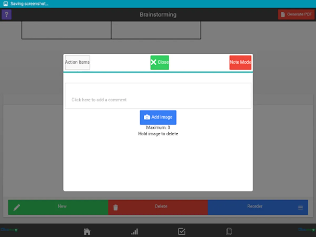 - The ability to conduct/create a brainstorming session, output it as a pdf or png file, and have access to previous brainstorming sessions