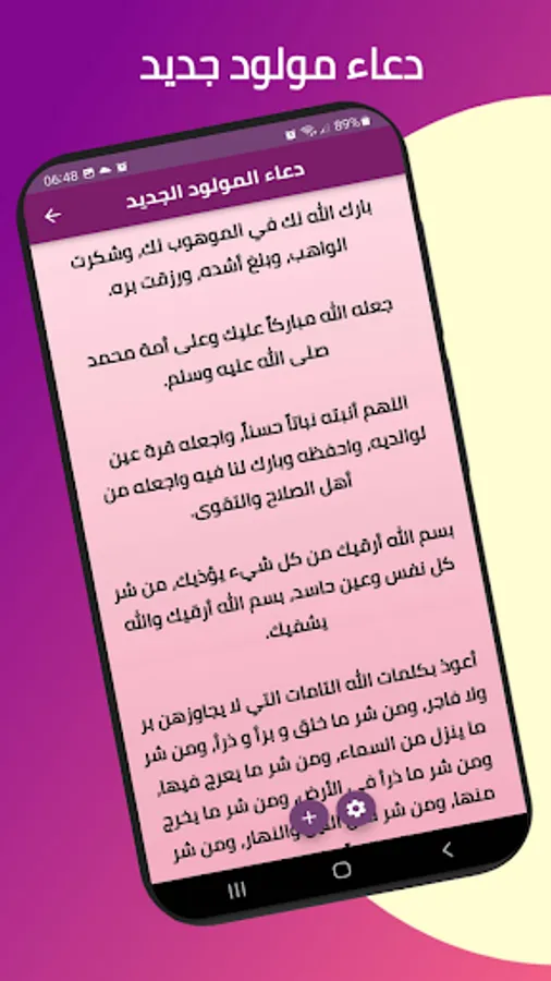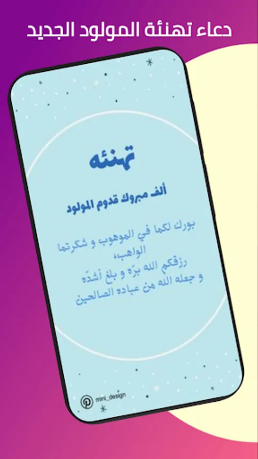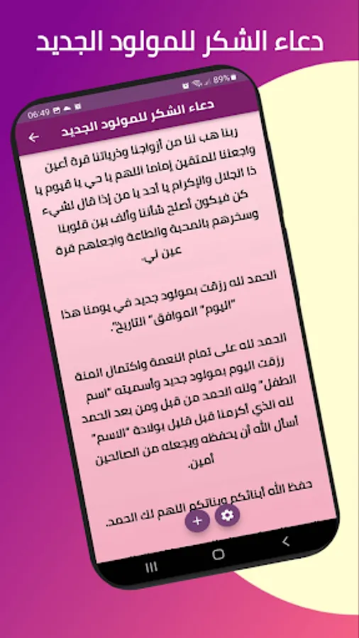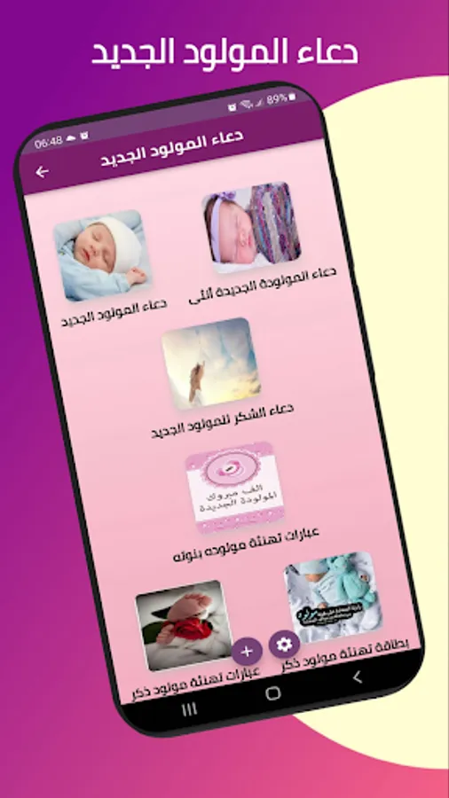 The Newborn Doaa application offers you a selection of the most beautiful supplications for congratulating a new born female, the best supplications for a girl child, the newest supplication for a male newborn and a collection of the best supplications for the arrival of the newborn, as well as the supplication of a new born and the supplication of congratulating the newborn, as well as the supplication of congratulating a new born child.