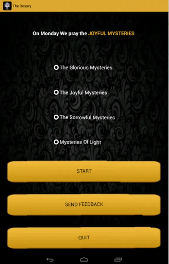 The Holy Rosary that automatically selects the mysteries by day.