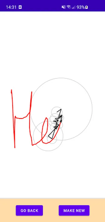 The App uses Complex Fourier Analysis to approximate the drawn shape with rotating segments with different sizes and speeds.
