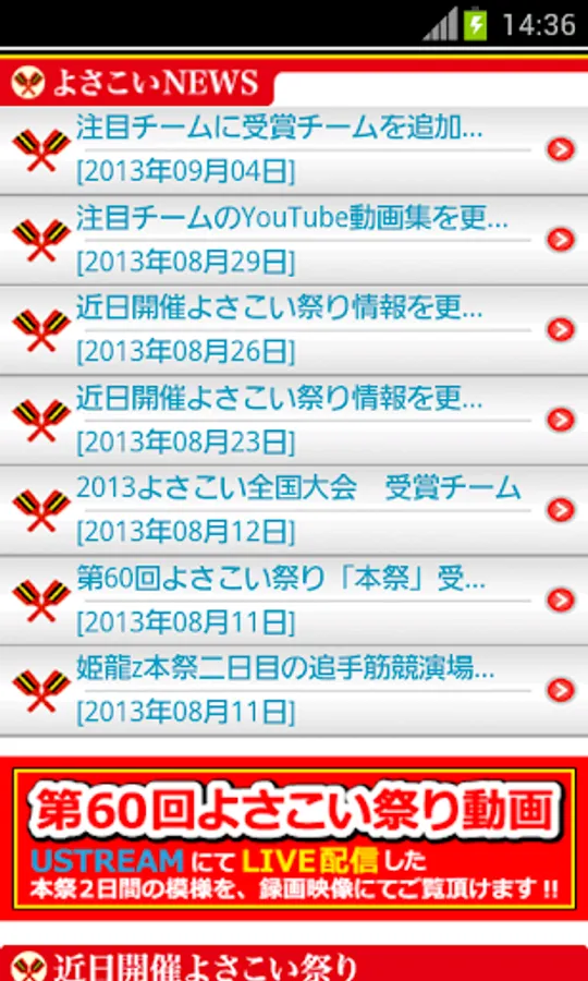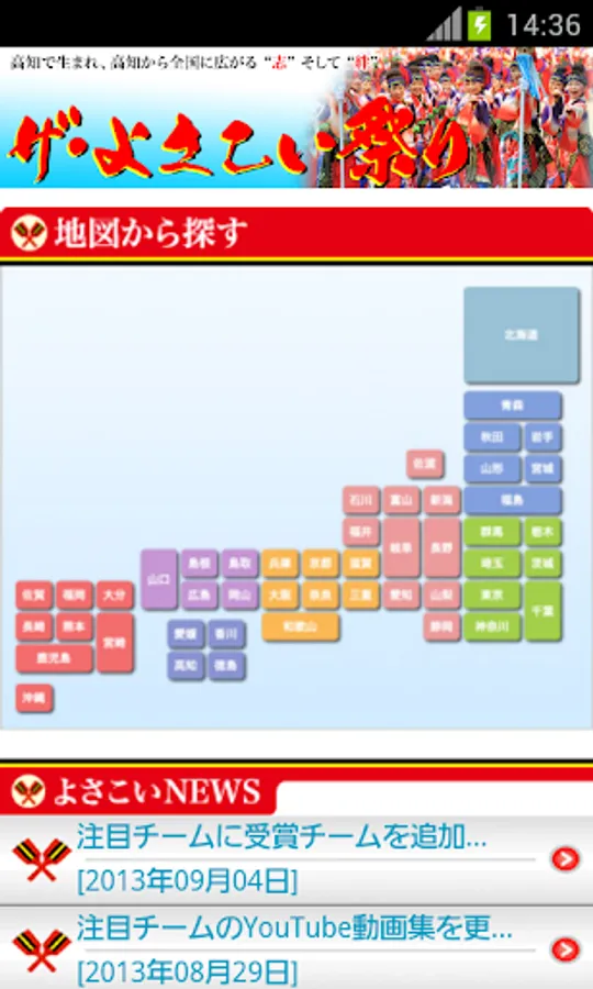 Being provided as tablet PCs, smartphones, site, app "Festival Yosakoi The" is a shortcut app to support promotion site "Yosakoi Festival" across the country.
