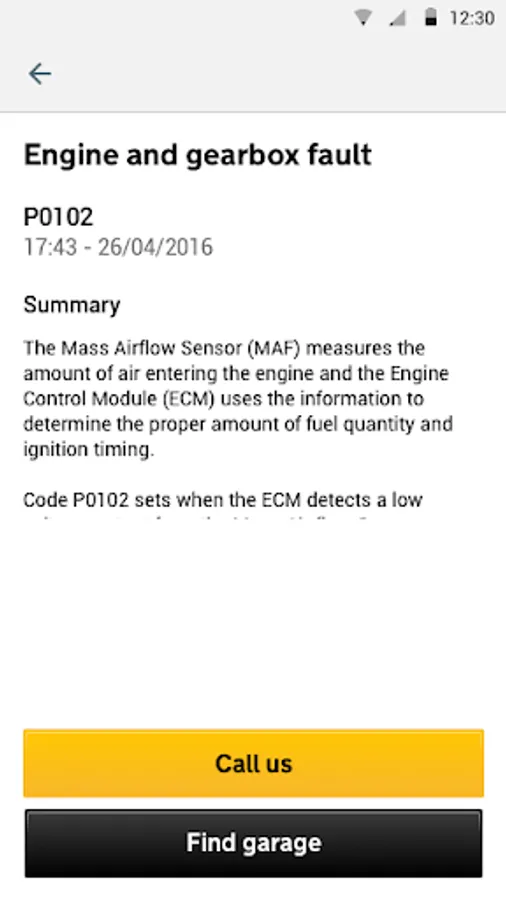 It’s a little device that plugs into your car’s ‘OBDII port’ (a connector that’s usually in the driver’s footwell) and monitors the health of your car. It spots faults that could cause a breakdown and warns you about them through this app on your phone. It can even let us know about any problems, so we can get in touch with help, advice or even organise a visit to fix it.