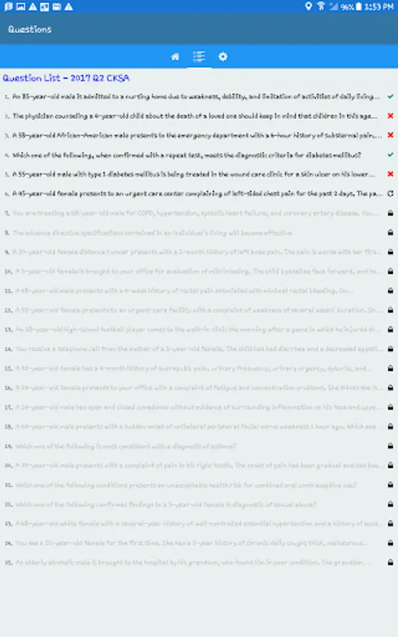 The American Board of Family Medicine (ABFM) mobile application for Continuous Knowledge Self-Assessment provides an optional method for family physicians to complete an activity for Continuous Certification credit. The activity is designed for continuous learning with a unique set of 25 questions presented each quarter.