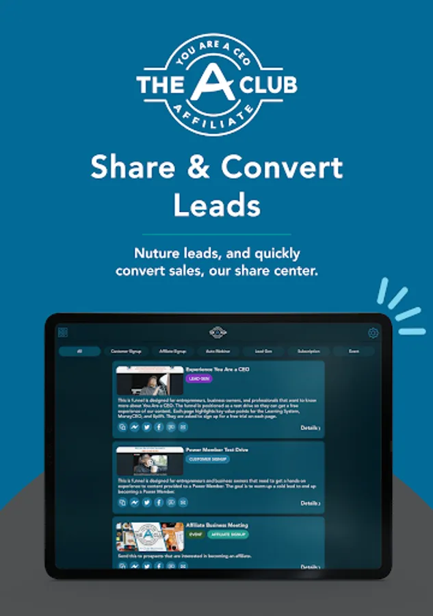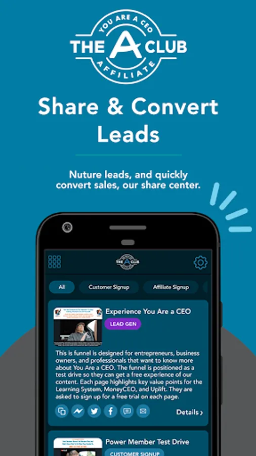 Our Share Center helps you maximize your income potential. With trackable links for easy sharing, these effective promotional funnels will help nurture leads and quickly convert conversions - so when a prospect purchases from clicking on your link, you get paid! Develop or optimize campaigns with the sharing center to supercharge those earnings.