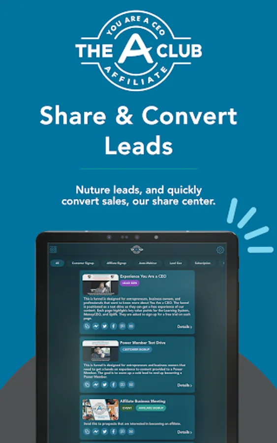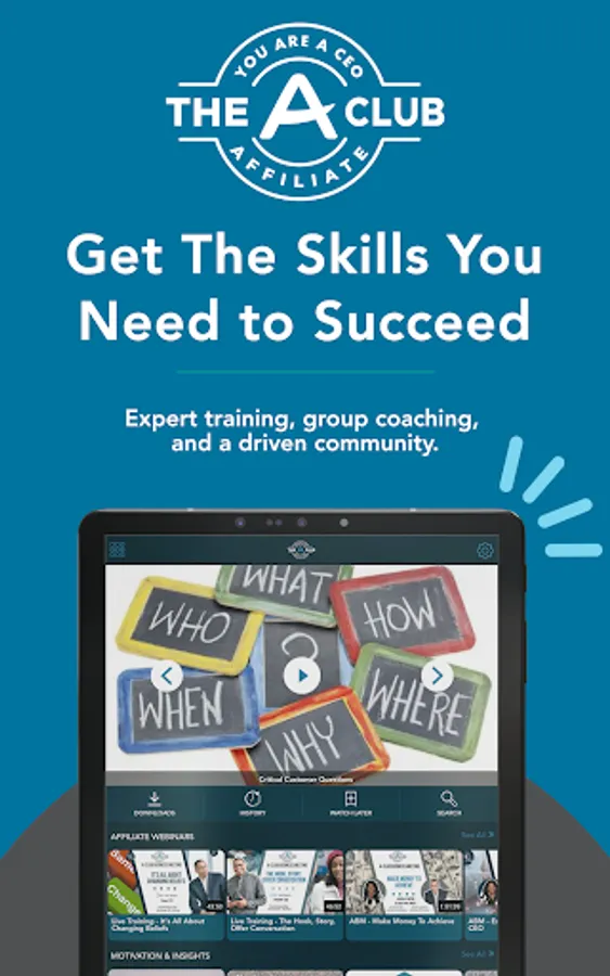 The A-Club App is part of a suite of life achievement tools including: You Are a CEO - Life Coaching, MoneyCEO, and Uplift - Mind Fitness.