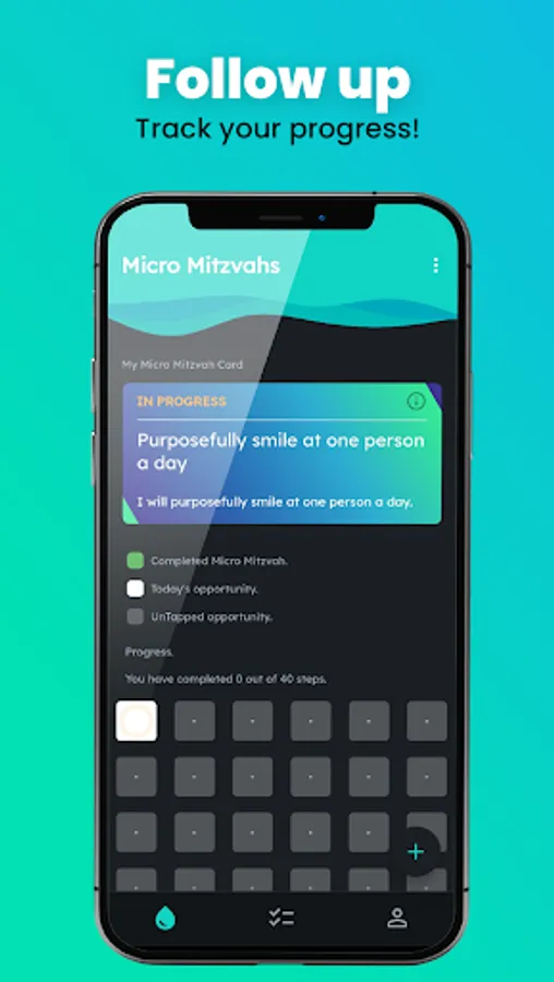 The MicroMitzvah app invites you to join a 40-day challenge! Choose one small action, and keep it going consistently.
