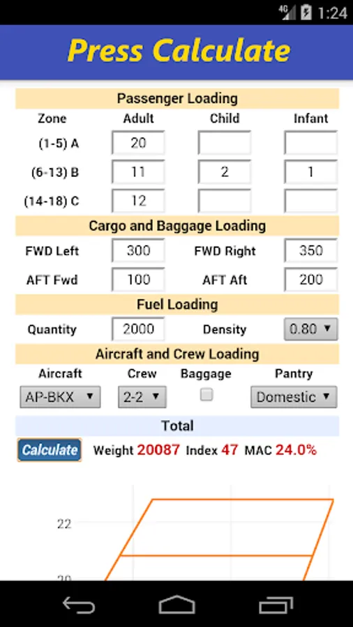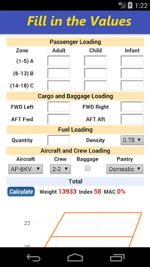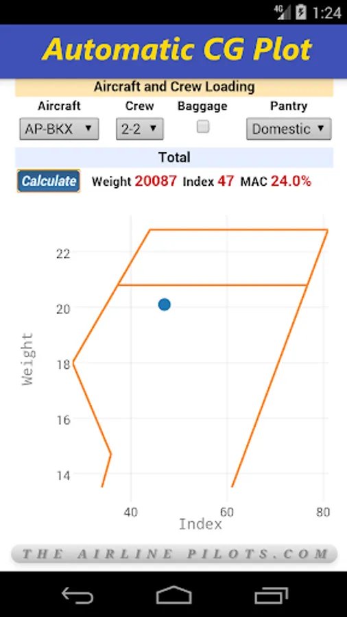 Note: The graph and CG Plot requires Android 4.4 (KitKat) or above. Lower versions can be used if only weight and index calculations are required.