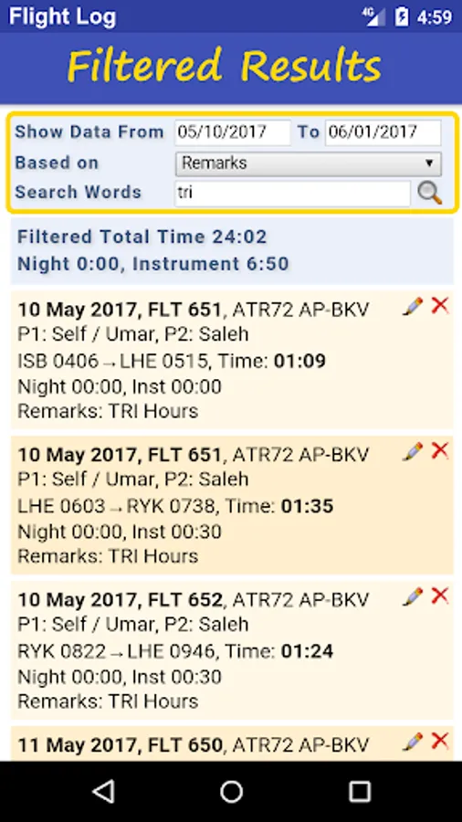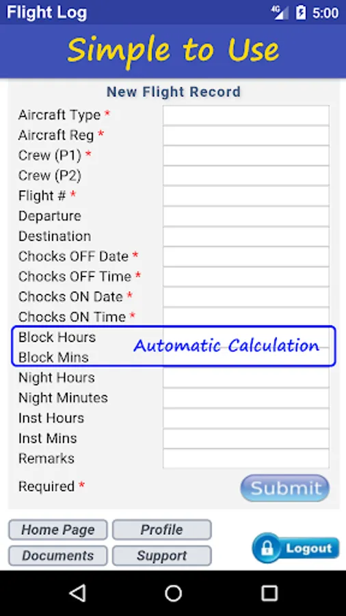 While adding the flight record you just have to mention the date and time. Software will automatically calculate your block hours, thus preventing typographical errors. For other entries, you can easily edit and correct typographical errors or delete any record you desire.